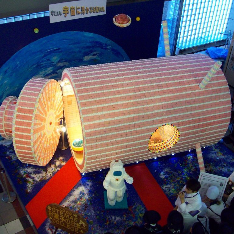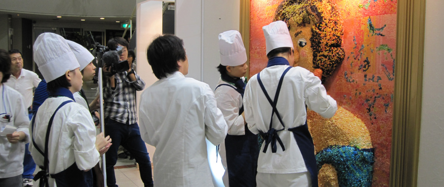 1998年より始まった「お菓子の日本一」は大手前製菓学院の生徒の皆さんが心を込めて創り上げる、お菓子を使って表現、制作する日本一の作品です。