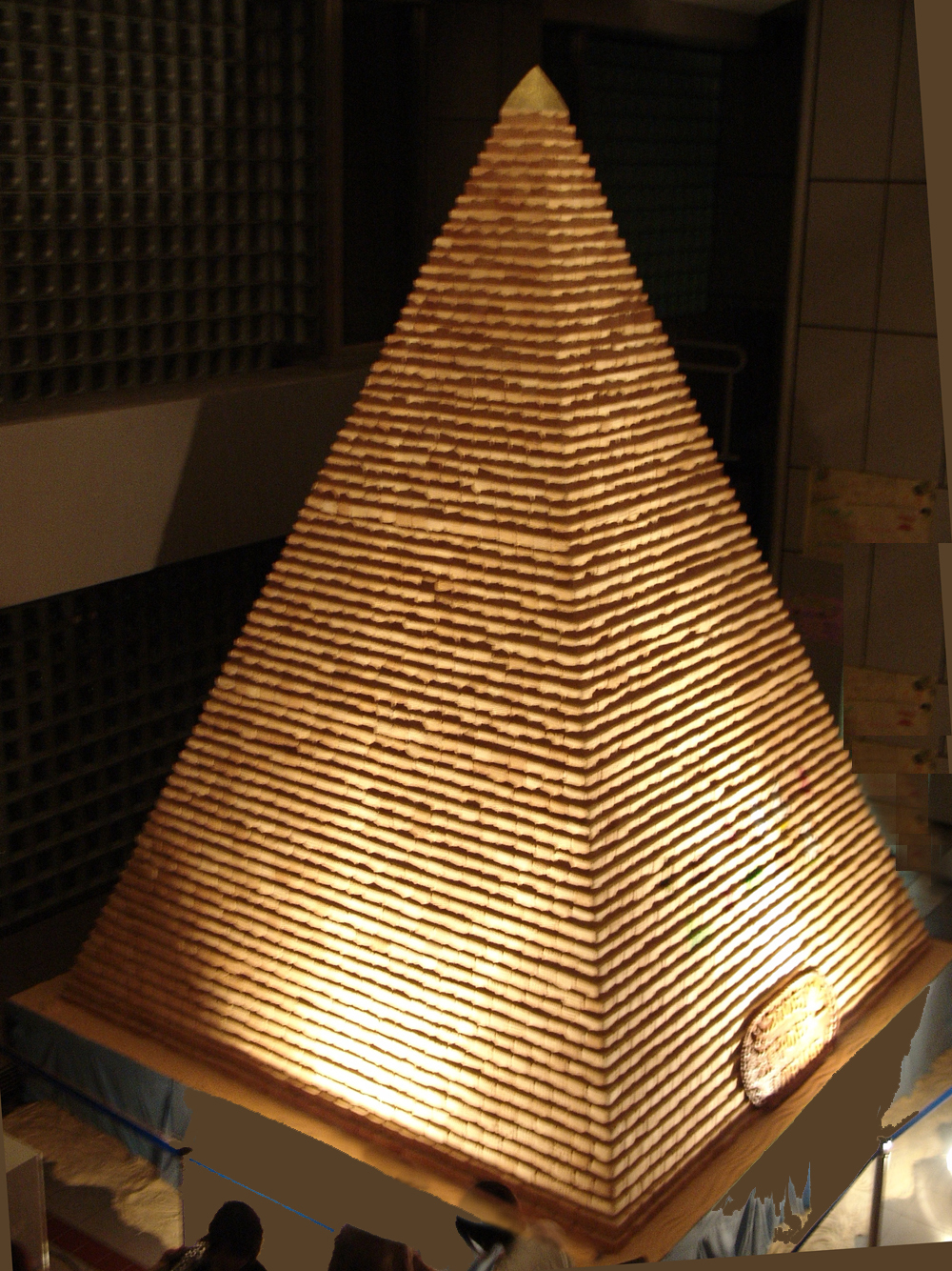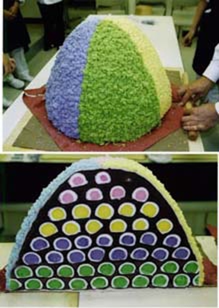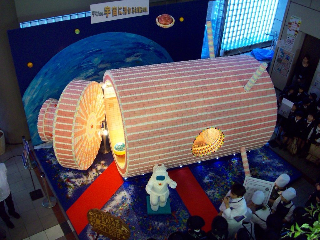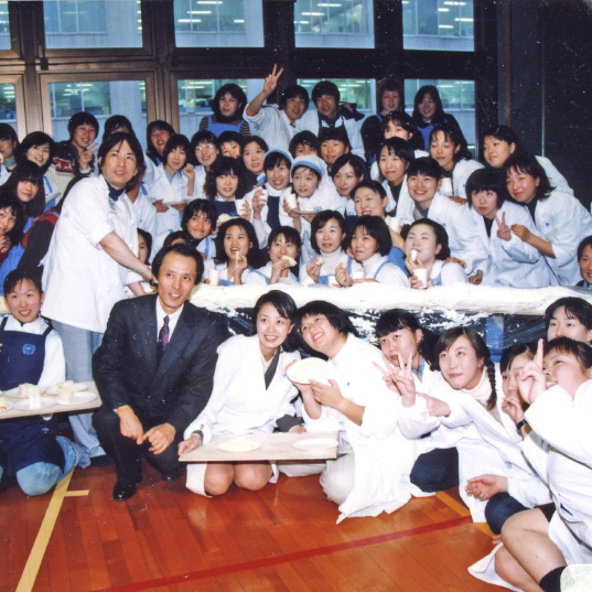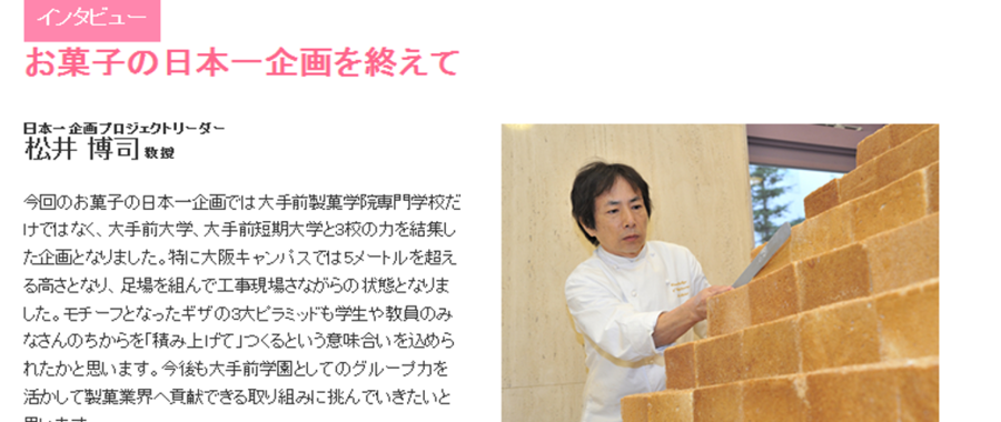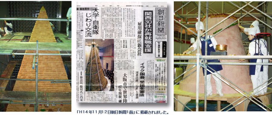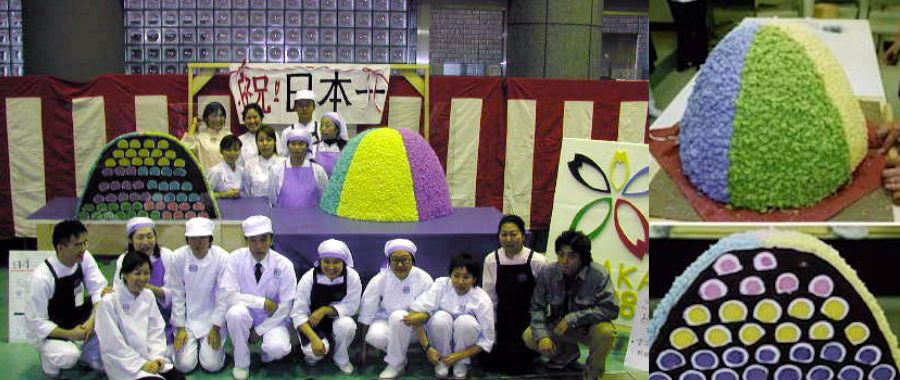日本一のお菓子を作る考え方は最初から考えられた訳ではなかった。最初は記念に残るモニュメントを作ることが目的だった。ところがお菓子の学校の大勢の学生が参加し、自分たちの専門分野を生かした作品を作ることを目標設定にしたため、お菓子での日本一をめざすこととなった。その結果みんなの意志が働き、協力し合い、苦労し、努力をしたことで、達成感を体験する事ができるイベントとなった。もちろんみんなを驚かせてやりたいと言うお菓子を作る側の誰もが持つ密かな気持ちを込めていることは言うまでもない。大きなものを作ると言う目的には、まず第一に非日常的達成感を経験できること、第二に多くの人が一つのものを作ると言う一体感を生み出し、第三に制作の過程で新しい技術やアイディアが創造されると共に数多く作ることによる技術の向上などが挙げられる。通常の学校教育の中では育成する事が大変難しい分野でもある。目標を高く設定すること、つまり日本一の規模(もちろん世界一のギネス記録でも良いのだが)の作品を制作するというコンセプトはこうして生まれたのである。